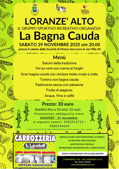 Sabato 29 novembre alle ore 20:00, Il Gruppo Sportivo Ricreativo di Loranzè Alto, organizza: